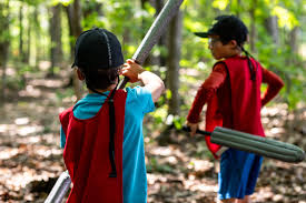 Jeu dynamique d’épées-mousse mêlant stratégie, imagination et sport d’équipe.